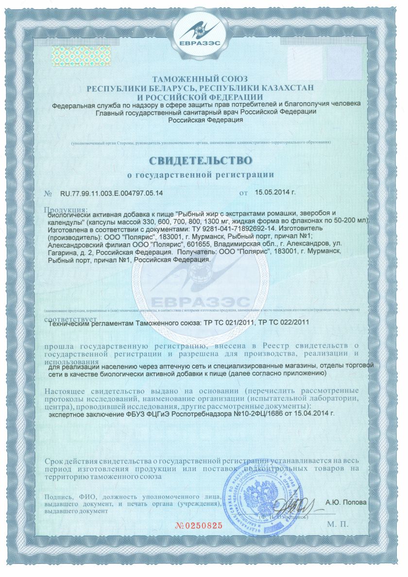 Биологически активная добавка к пище «Рыбный жир с экстрактами ромашки, зверобоя и календулы»