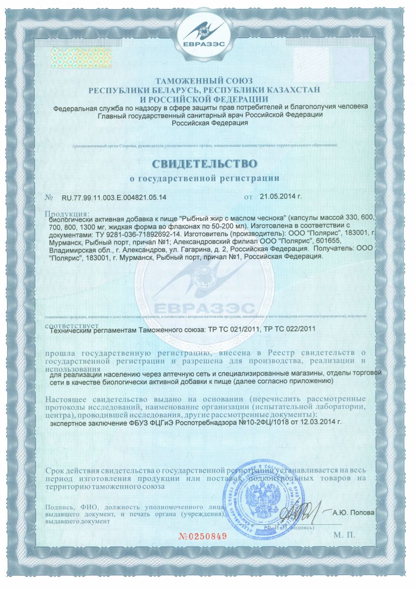 Биологически активная добавка к пище “Рыбный жир с маслом чеснока”